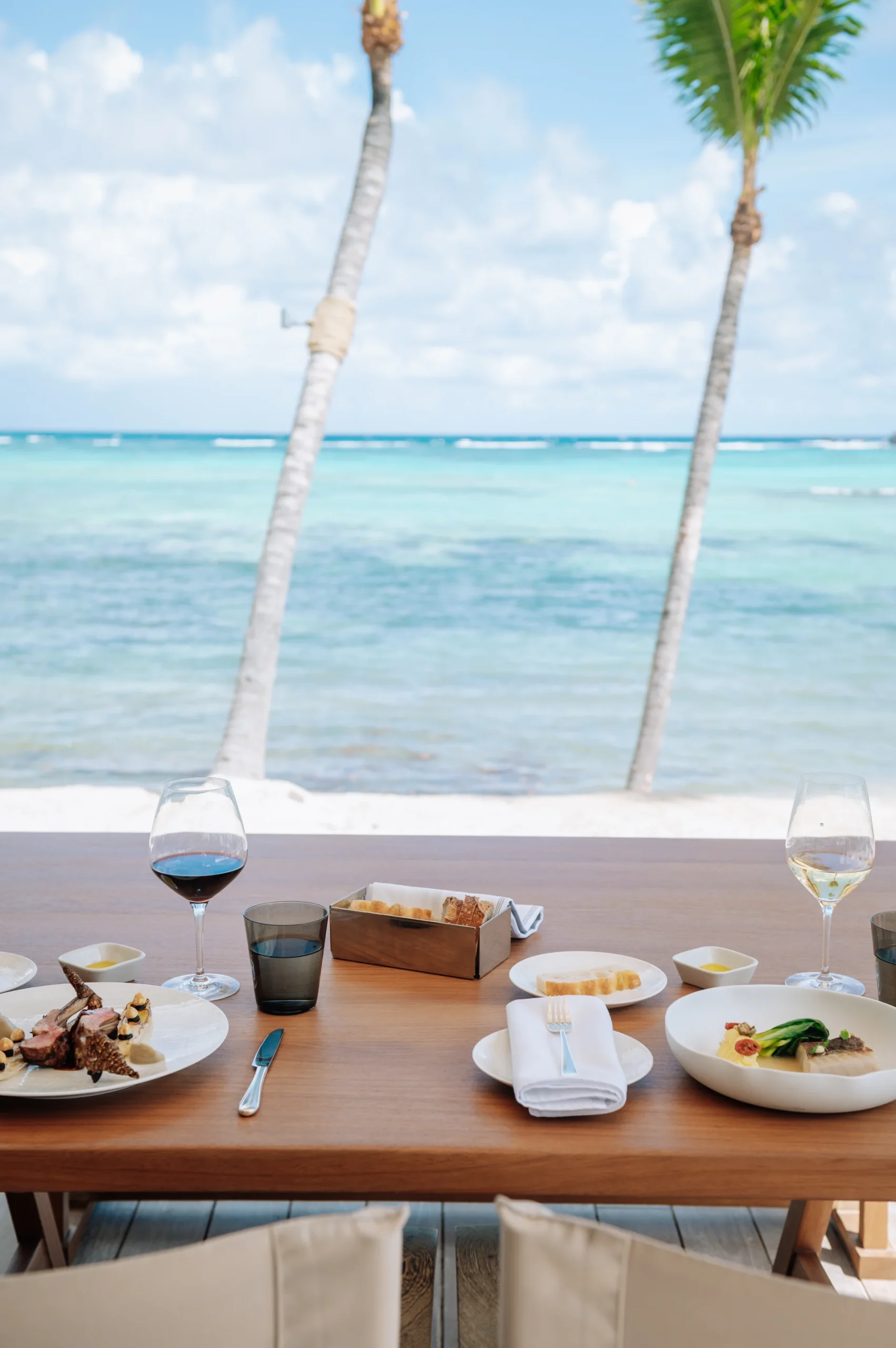 Notre emplacement en bord de mer, offrant une vue imprenable sur le lagon, propose une ambiance élégante et décontractée, idéale pour un repas raffiné et convivial. Savourez la douceur des alizés dans notre salle à manger ouverte, et, pour une touche authenti quement insulaire, essayez notre expérience de déjeuner “pieds dans le sable”.